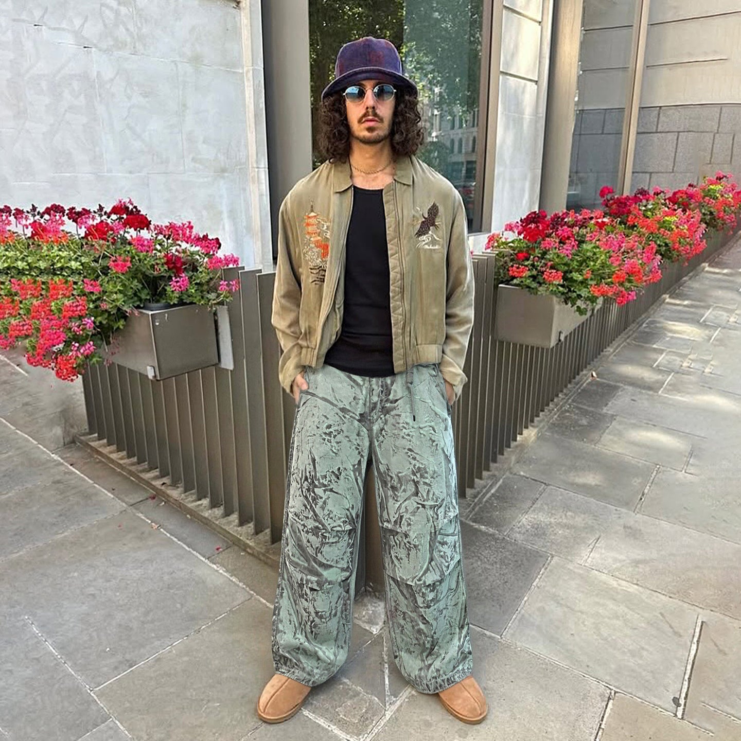 Marble Pattern Wide-Leg Track Pants – Unisex Lightweight Streetwear Pants